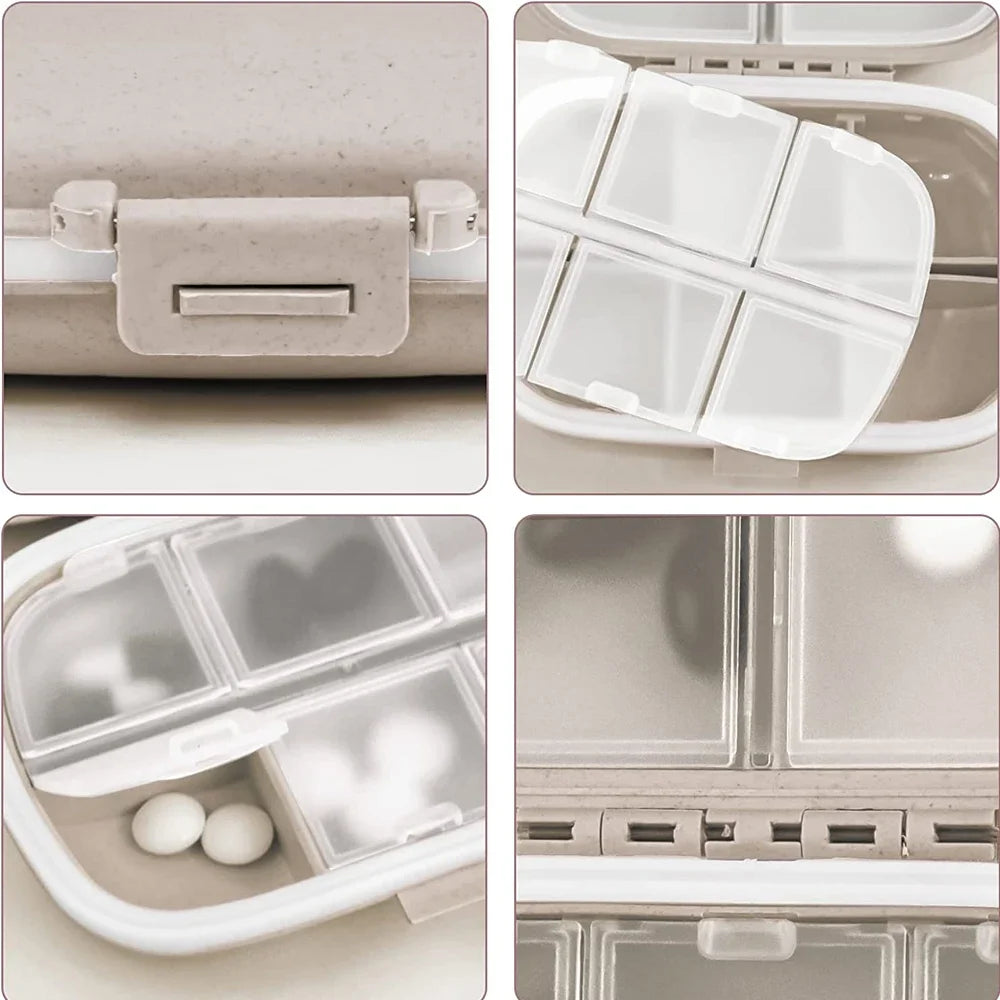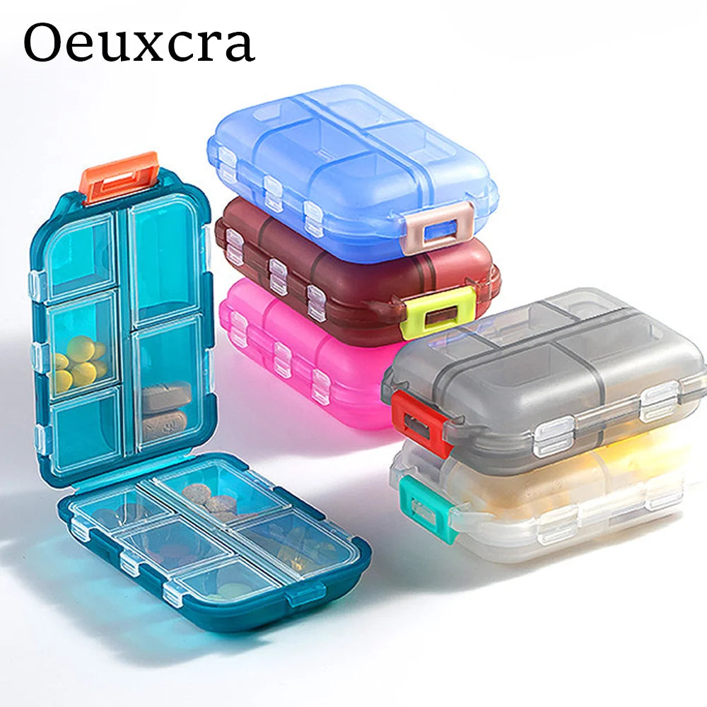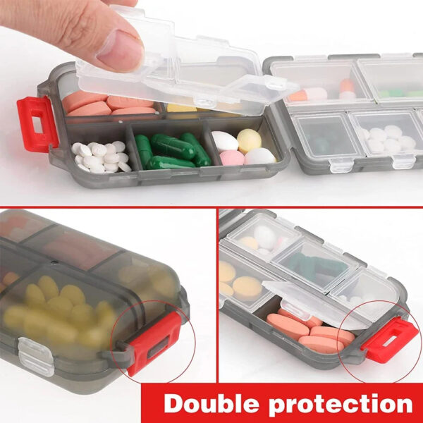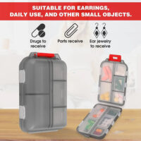 2.Travel pill box with 10 individual compartments (4 large compartments and 6 small compartments for your different amounts of pills). especially suitable for short travel. small size, convenient to carry.