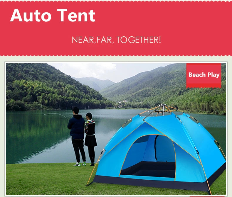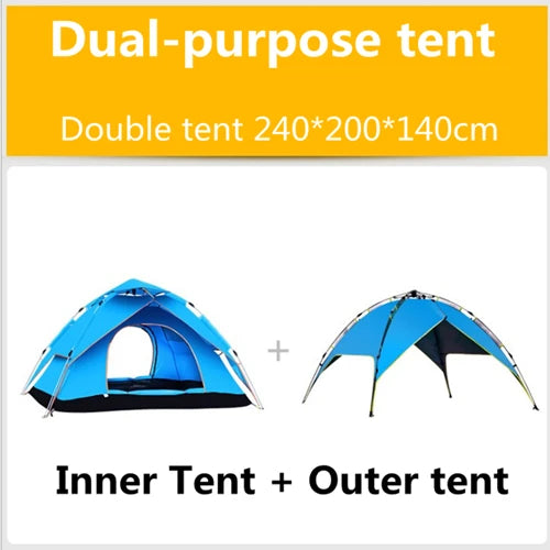 240*210*140cm Camping Automatic throw blue Tent Waterproof Climbing Travel Hiking Urltra-Light Family Baby Auto Double Tents