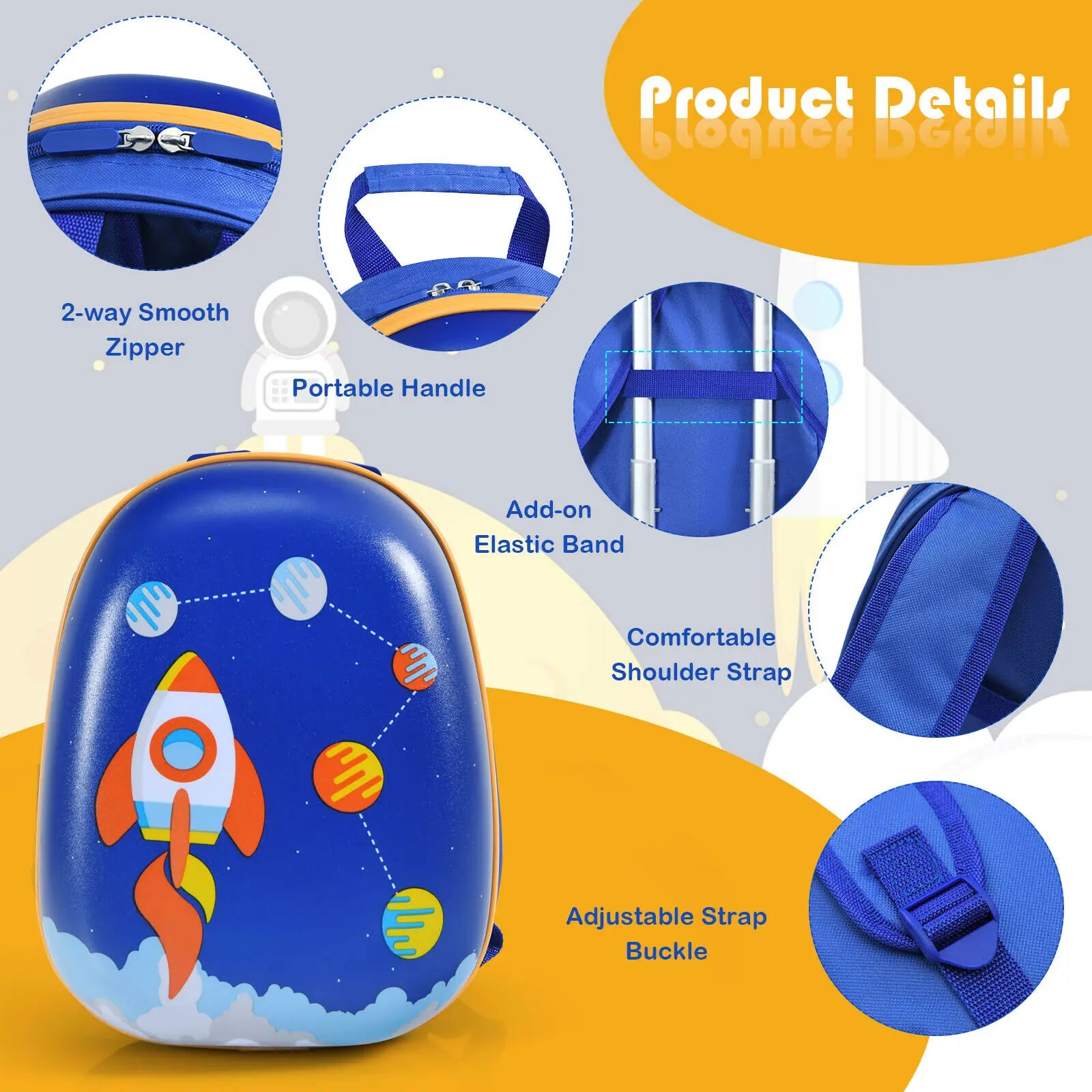 Features: Large capacity and light weight allows you to carry many items but doesn’t feel tired Kid-friendly materials make it safe, odorless and durable 3-Level adjustable telescoping handle for kids of different heights Surface covered frosted protective film makes it wear-resistant, waterproof and easy to clean The flexible 360° universal wheels of the luggage case are convenient for kids to pull Wide and comfortable backpack shoulder strap with adjustable strap buckle 2-way smooth zippers for easier opening more convenient and flexible Ribbon strap does not wear clothes and is durable Cute astronaut pattern on the surface makes it very attractive It fits the size requirement of airline carry-on luggage Suitable for flights, trips, camps and outdoor activities