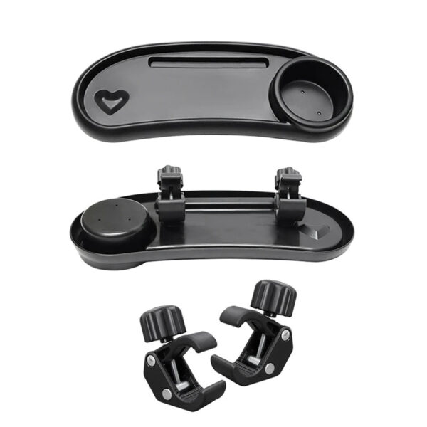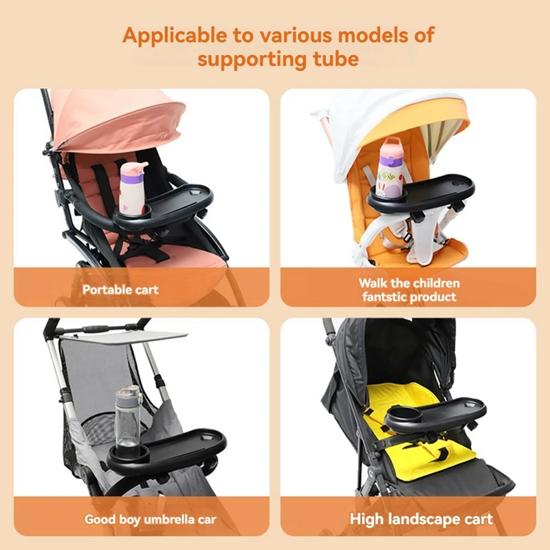 3. Universal Stroller Tray: This enhanced design of the infant stroller dinner table tray is universally compatible with most stroller belly bars/guards. The anti-slip clamp firmly holds onto the bar, preventing tilting or slipping.