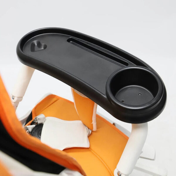 2. Convenience: This three-in-one multifunctional stroller cup holder includes a snack tray, drink holder, and phone holder. The spacious child tray provides a flat surface for eating or playing. The innovative design caters to different needs, allowing moms to securely place items while babies can easily access them.