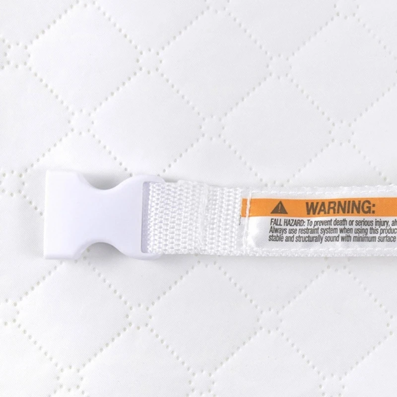 Designed with wall and a safety belt, this changing pad ensures your baby comfort and security during diaper changes on any dresser top.