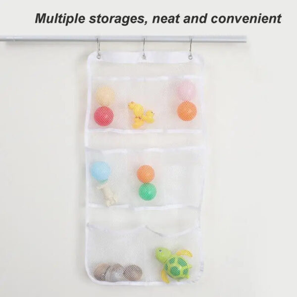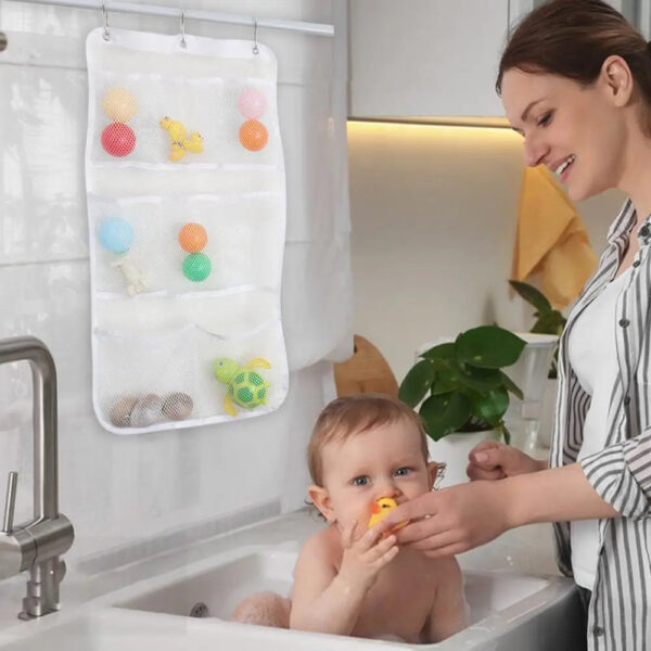 5.Ample Storage: Keep your bathroom organized with this bath toy organizer that boasts ample space to store toys, combs, and other small items. Equipped with eight pockets, it caters to all your storage needs