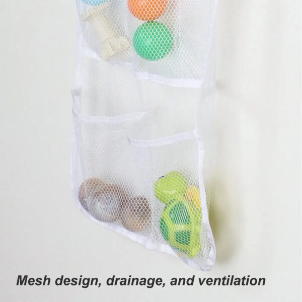 2.Rapid Drying Mesh: Our Bath Toy Organizer, with its unique mesh material, saves valuable bathroom space. Its design allows for rapid water drainage and quick drying, ensuring excellent ventilation
