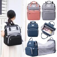 Multifunction Waterproof Mum Backpack Portable Large Capacity Diaper Bag with Changing Baby Bed Crib and Mosquito Net