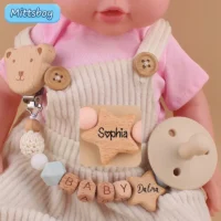 Material: Personalized Name Handmade Beech Pacifier Clips Holder Chain
