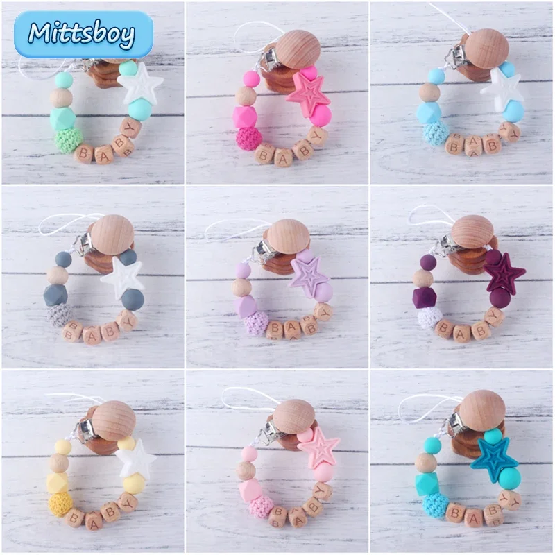Material: Personalized Name Silicone Stars Beads Beech Letters Pacifier Chains