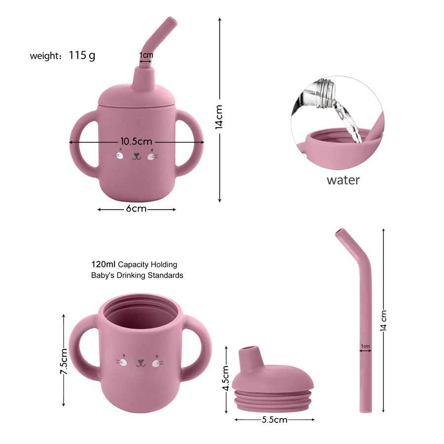 Portable Baby Feeding Bottle Cup Silicone Sippy Cups Children Leakproof Drinking Cups cartoon Pattern Infant Straw Drinkware