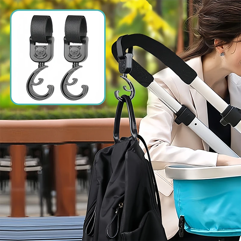 Degree Rotation :The stroller hook can rotate 360 degrees, allowing for easy access to the items hung on it.