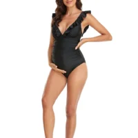 Name:Maternity Clothings Solid Black Ruffled One-piece Swimwear Lace Up Female Bikini Swimwear New Pregnant Women Beach Bathing Suits